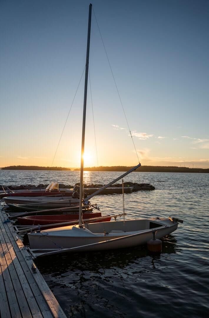 Odkryj spokój żeglarstwa i motorowodniactwa w zachodzącym słońcu.